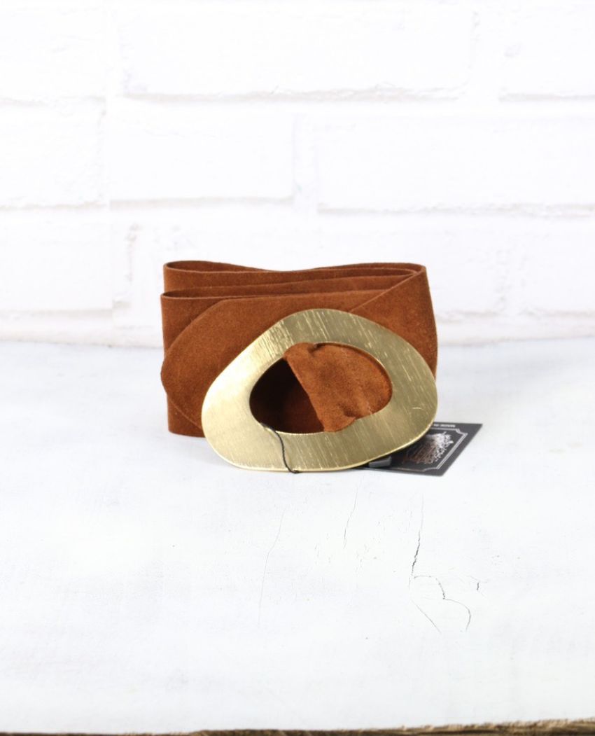 Cinturón de serraje con hebilla dorada. Por su material flexible, otorga a esta pieza versatilidad sin límites a la hora de complementar cualquier outfit: vestidos, chaquetas, pantalones…es ideal si quieres realzar la cintura y tus caderas, el cinturón ARO será tu mejor alternativa. No puede faltar entre tus complementos favoritos y para tus looks diarios.