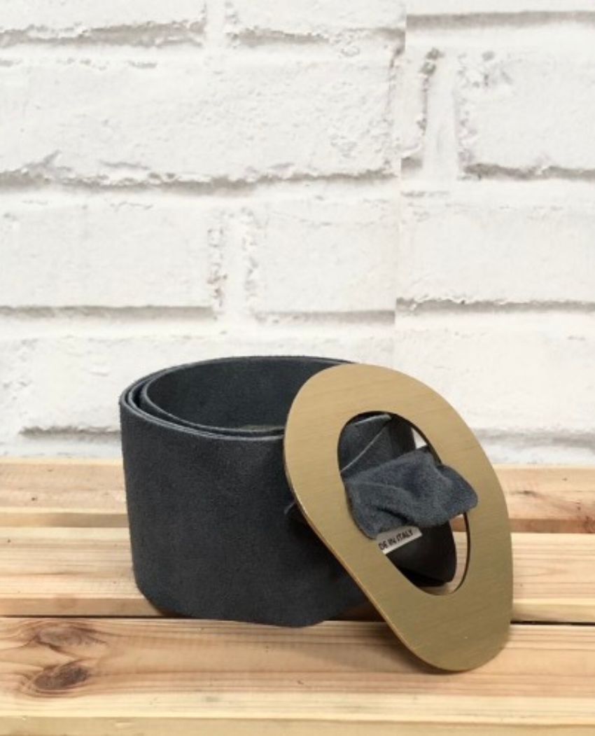 Cinturón de serraje con hebilla dorada. Por su material flexible, otorga a esta pieza versatilidad sin límites a la hora de complementar cualquier outfit: vestidos, chaquetas, pantalones…es ideal si quieres realzar la cintura y tus caderas, el cinturón ARO será tu mejor alternativa. No puede faltar entre tus complementos favoritos y para tus looks diarios.